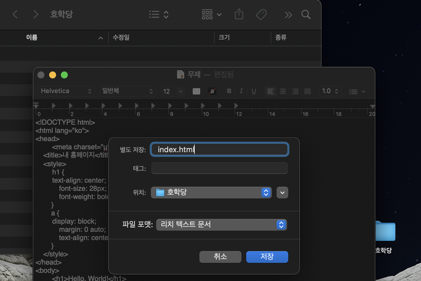 "index.html"이란 이름으로 저장하는 것입니다.