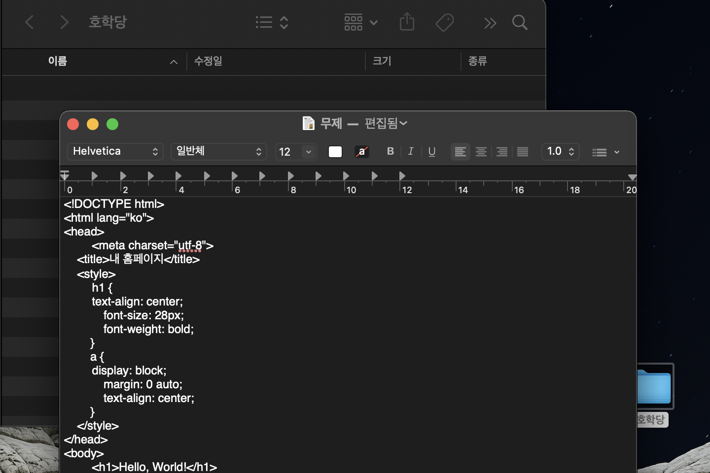 파일을 정확하게 ".html"이란 확장자로 생성했다면