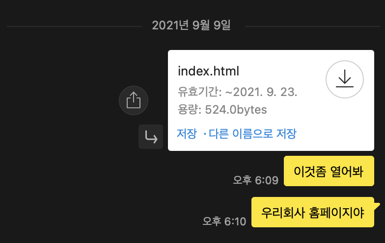 텍스트 파일(index.html)을 친구에게 카톡으로 보내