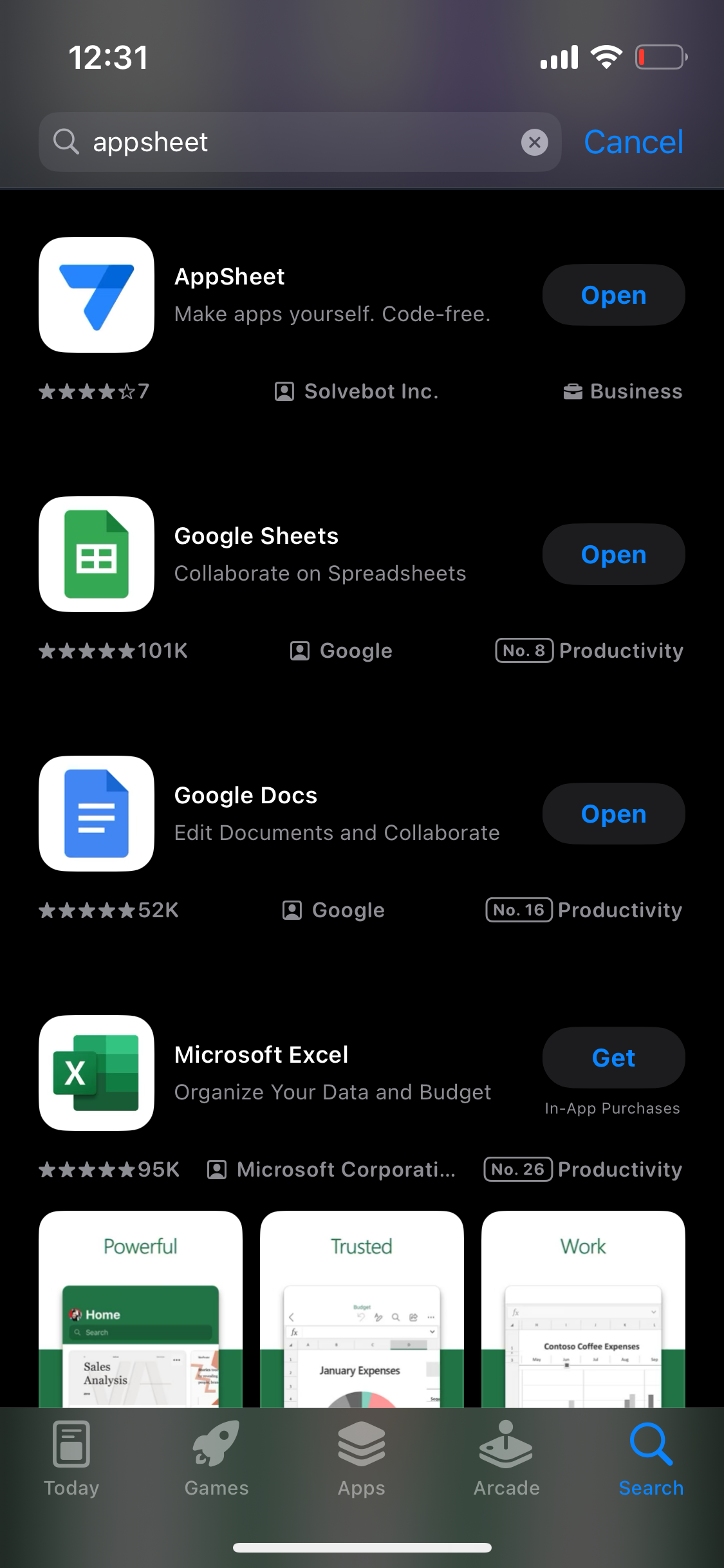 바로 스마트폰 내 스토어에서 appsheet를 검색하고
