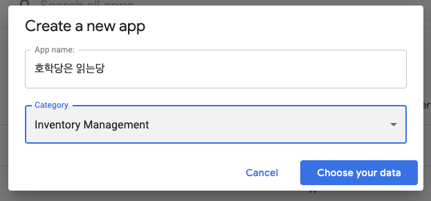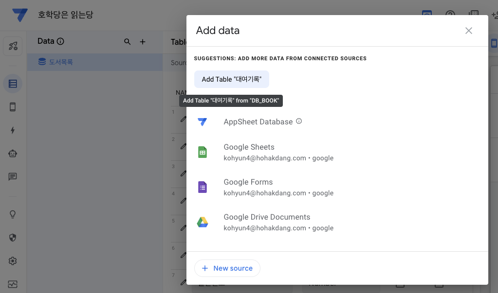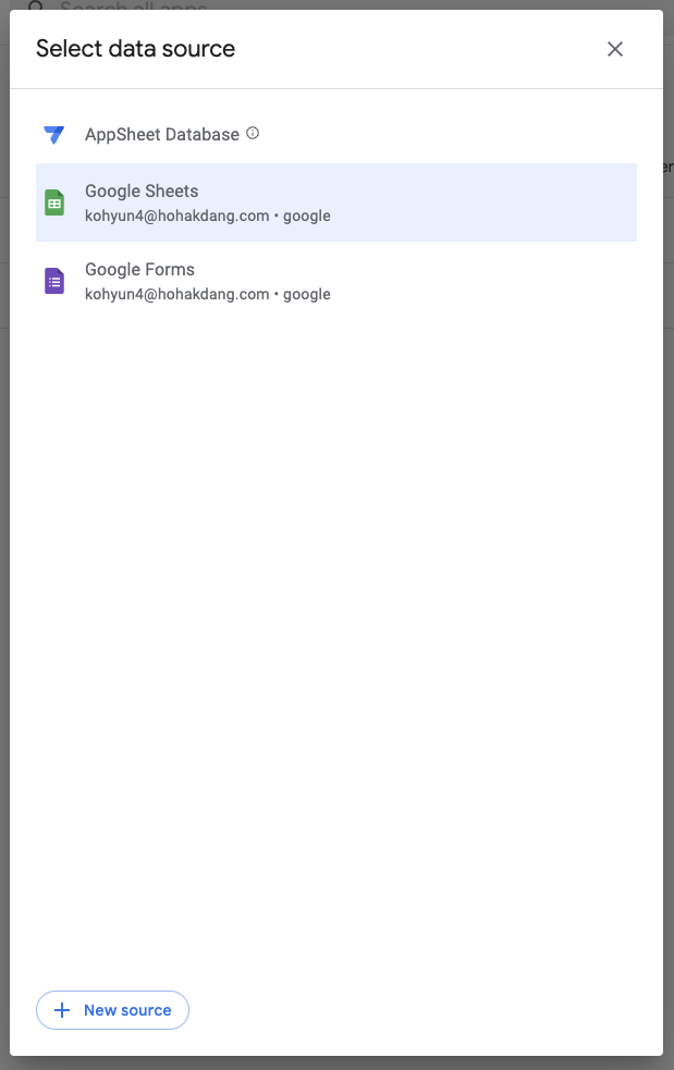 마찬가지로 appsheet 계정으로 로그인하고,