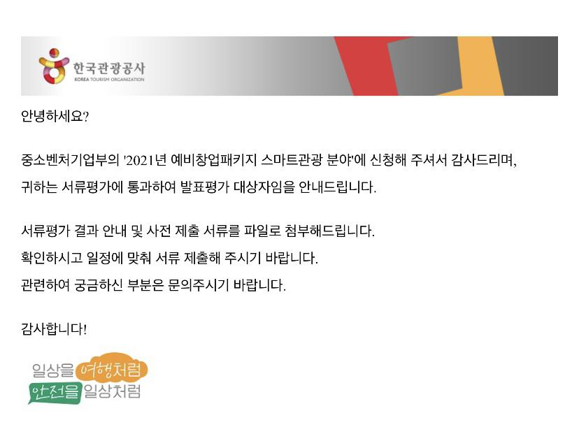 2021 예비창업패키지 서류 합격 메일