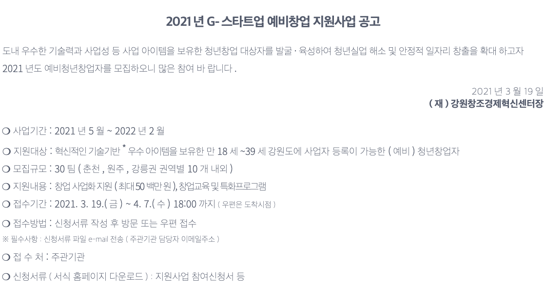 'K-StartUp 홈페이지'에서 2021년 상반기에 공고되는 창업 지원사업을 찾아보았습니다.