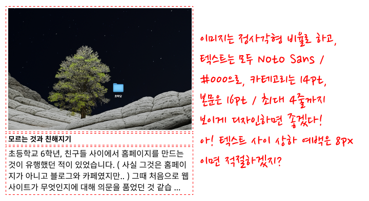 카드 UI 컴포넌트에 제목, 본문 요약 등 처럼 어떤 내용을 넣을지 기획하고,