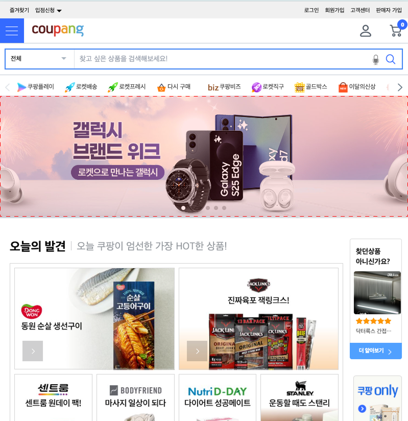 쿠팡(2025년 기준)의 PC 웹 사례를 살펴보겠습니다.