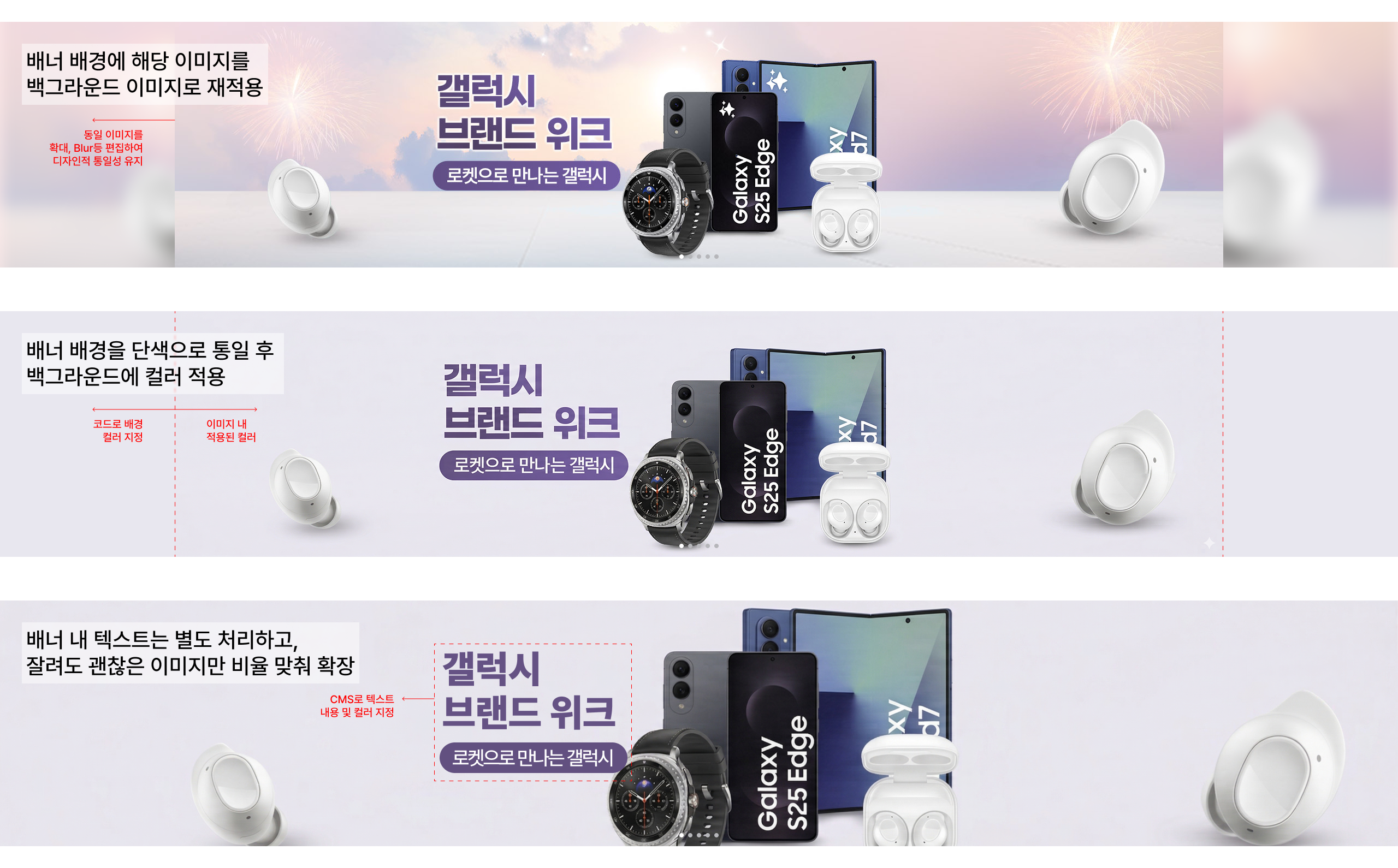 대응되는 해상도별로 어떻게 보여질지를 예측하여 CMS 기능을 설계하고, 또 그에 맞도록 배너 디자인 가이드를 구체적으로 제작/배포해야 합니다.